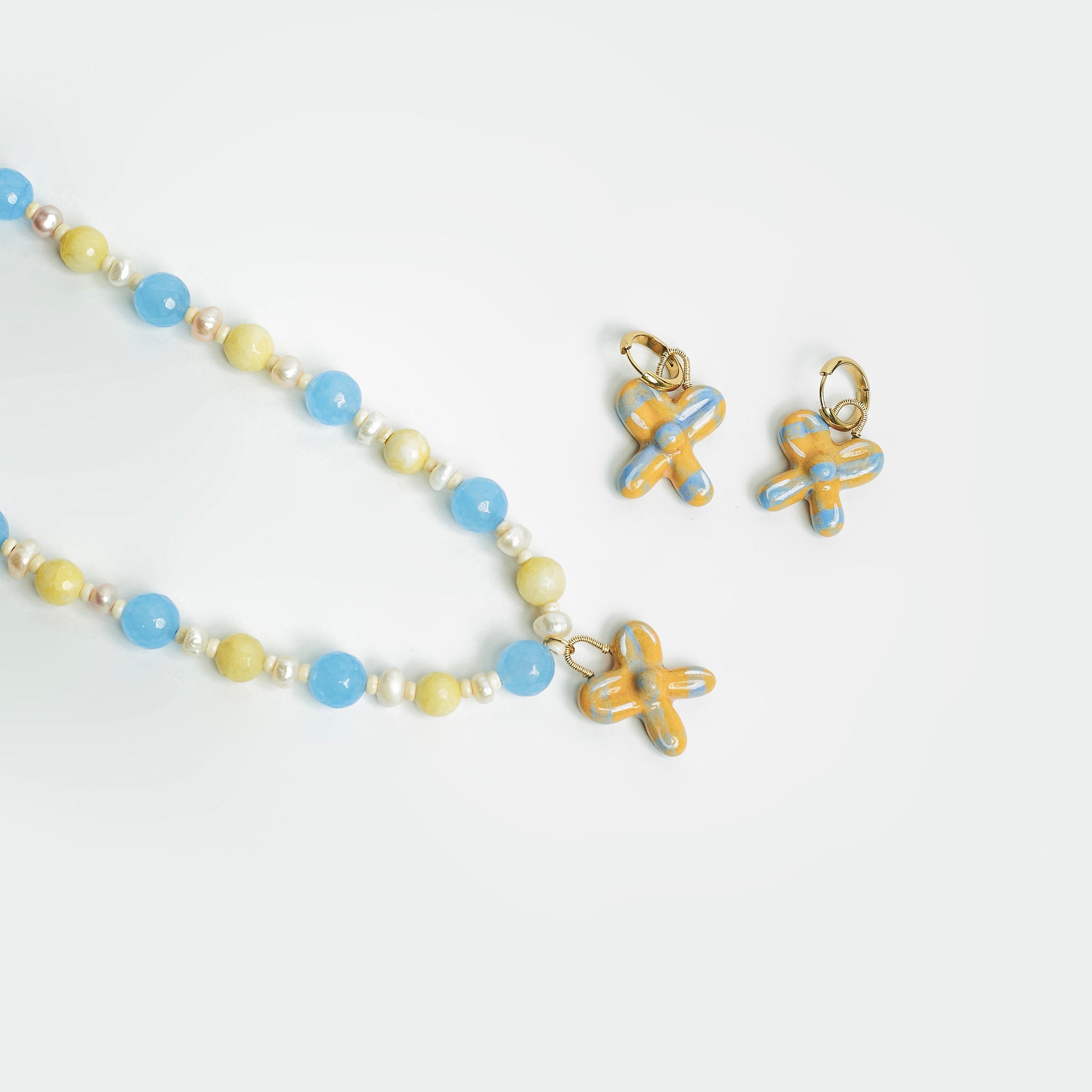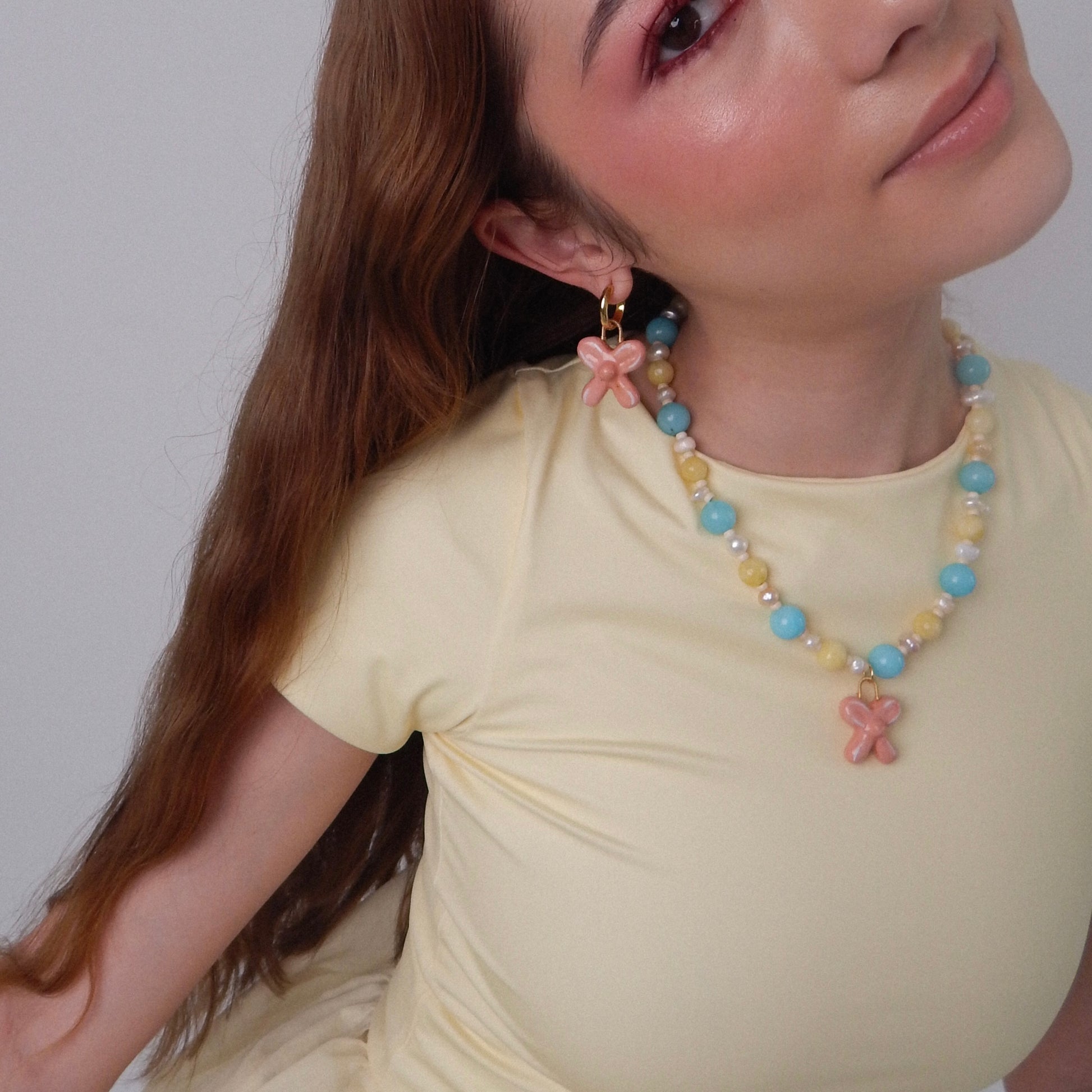 Nuestro Set The Show incluye el collar carrusel + hoops globo. Disponible en dos combinaciones, algodón de azúcar o luces.